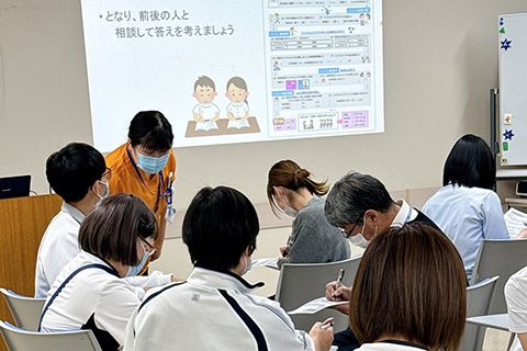 今回の研修はクイズ形式になっており、インフルエンザの感染経路🦠やワクチン💉の効果がどれだけ持つかなどをグループワーク形式で考えました💡